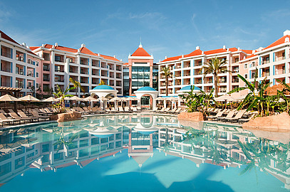 Das Hilton Vilamoura AS Cascates Golf Resort & Spa liegt inmitten einer 12 Hektar großen Gartenanlage direkt neben dem renommierten Golfplatz Dom Pedro Pinhal. Die eleganten Zimmer mit Pool- oder Gartenblick verfügen über einen Balkon und ein Marmorbad. Außerdem sind sie mit einem Flachbildfernseher ausgestattet. Die Zimmer der gehobenen Kategorie bieten eine Terrasse und einen separaten Wohnbereich und haben teilweise Blick auf den Golfplatz. Das Zentrum von Vilamoura ist fußläufig erreichbar, alternativ bringt Sie ein kostenfreier Shuttle-Service in 20 Minuten zum Jachthafen Vilamoura und zum Privatstrand Falesia. Es erwarten Sie 6 Swimmingpools mit rauschenden Wasserfällen, sowie Portugals größtes Spa.