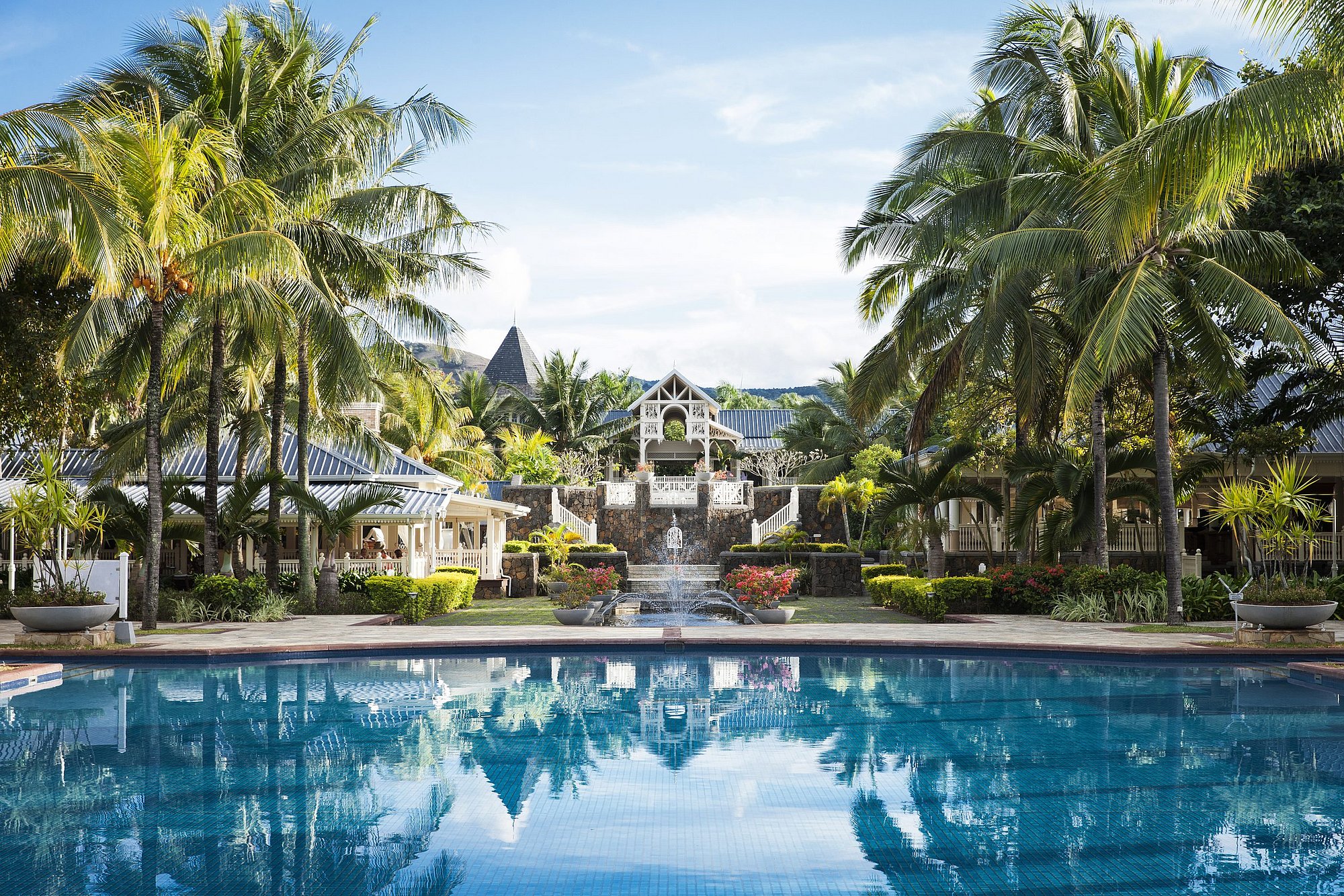 Das Mitglied der „Small Luxury Hotels of the World“ und Gewinner der World Golf Awards in der Kategorie Indian Ocean's Best Golf Hotel 2016 bietet alle Annehmlichkeiten eines 5-Sterne-Deluxe-Resorts, darunter auch das „Seven Colors Spa“. Alle Suiten haben Buttler Service inklusive, sind sehr geräumig und hochwertig eingerichtet und nach der Renovierung schöner denn je. Kulinarisch können Sie sich in allen 12 Restaurants und den 8 Bars der Domaine verwöhnen lassen, die sich im Hotel, im benachbarten Heritage Awali, dem C-Beach Club und im Chateau de Bel Ombre auf dem Golfplatzgelände befinden.