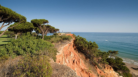 100 m über dem goldenen Sandstrand und dem azurblauen Wasser des Atlantischen Ozeans erwartet Sie der gepflegte 9-Loch Pine Cliffs Golfplatz. Dieser Golfplatz zählt dank seiner Lage inmitten von Kiefernwäldern zu den originellsten im ganzen Land. Baumgesäumte Fairways, die parallel zum Atlantischen Ozean verlaufen, versprechen den Gästen einen unvergesslichen Ausblick auf die Küstenlinie der Algarve. Der Architekt Martin Hawtree achtete vor dem Anlegen des Golfplatzes besonders darauf, dass die natürliche Bewaldung so unberührt wie möglich bleibt.