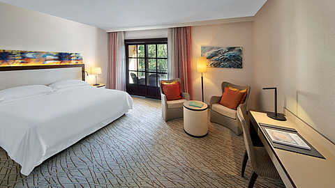 Die Insel Mallorca im Mittelmeer bietet während des ganzen Jahres einsame Strände, Berge, Olivenhaine, klares Wasser, weißen Sand und Sonnenschein und ermöglicht somit eine Vielzahl an Aktivitäten im Freien. Zu den Annehmlichkeiten des renovierten Resorts gehören das Shine Spa for Sheraton, Tennisplätze sowie Innen- und Außenpools. Alle Zimmer verfügen über das ultrakomfortable Sheraton Signature Sleep Experience Bett, Highspeed-Internetzugang, Klimatisierung, atemraubenden Blick und vieles mehr. Sie sind im eleganten spanischen Landhausstil eingerichtet und viele der Zimmer verfügen über erfrischende Balkone.